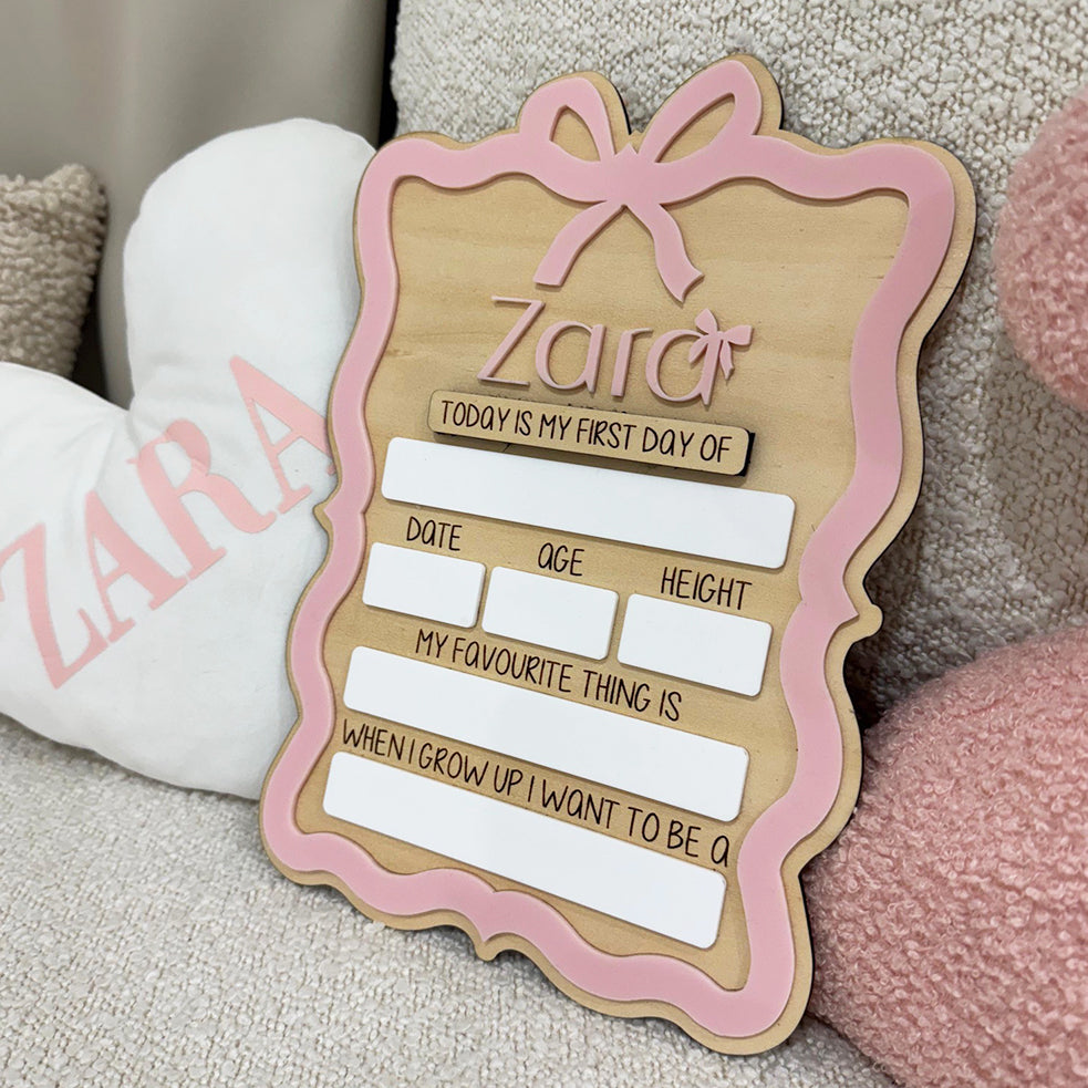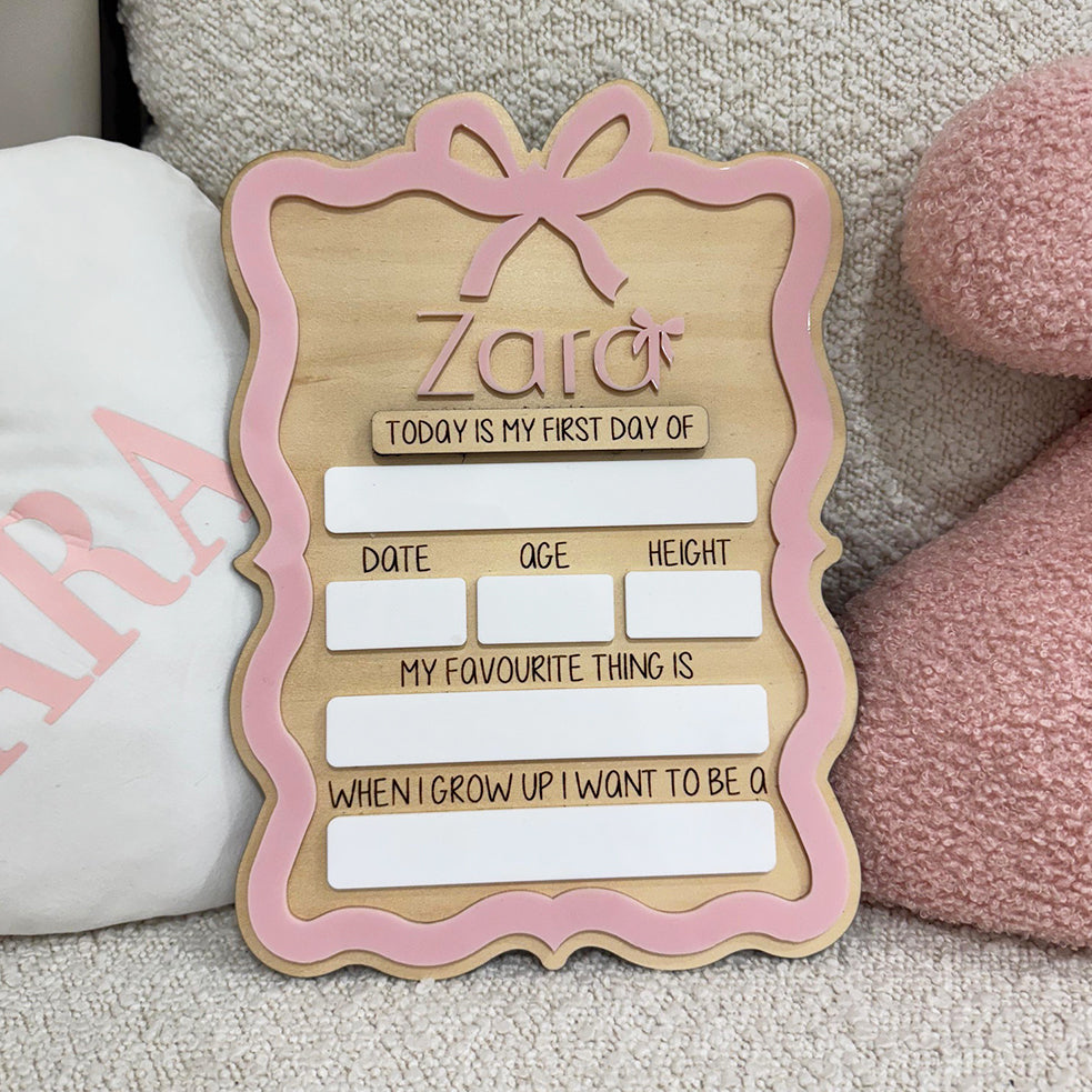 Celebrate the unforgettable moments of your child's school journey with this charming first-and-last day board. A beautiful way to honor their academic achievements.. It gracefully connects the thrill of the first day with the proud reflection of the last, offering a nostalgic wrap-up to each school year. More than just a board, it’s a tribute to learning, growth, and the cherished memories your family creates along the way.