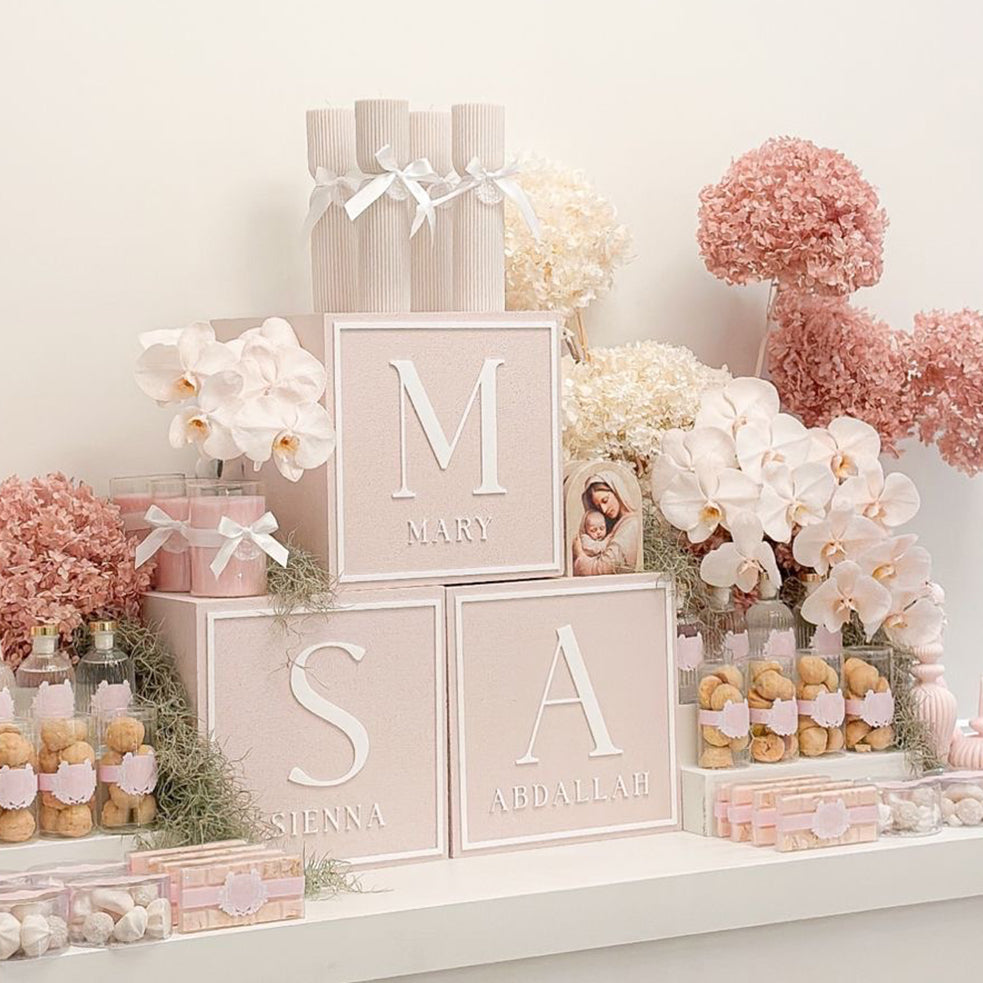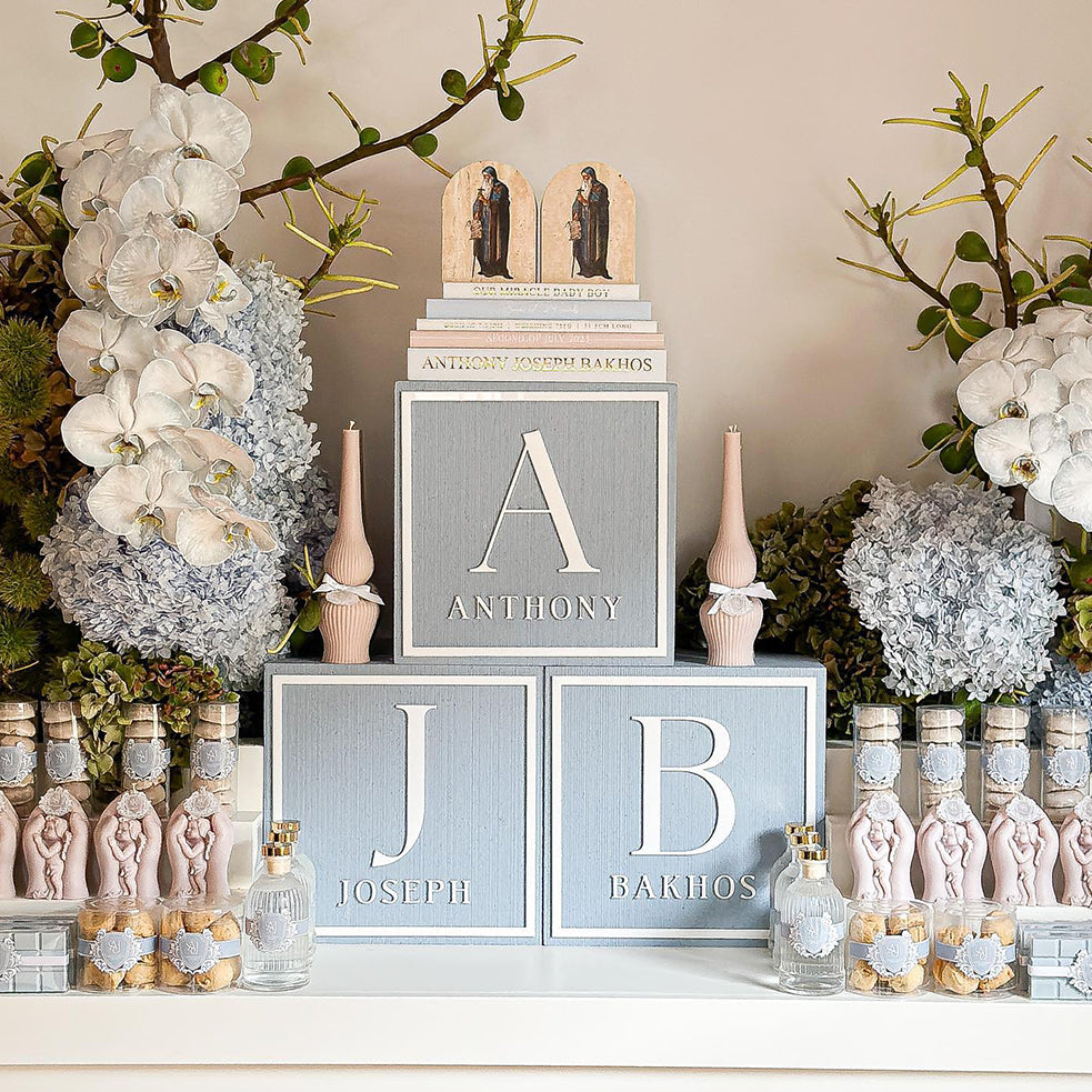 AJB 25cm painted foam block (x3) + acrylic name