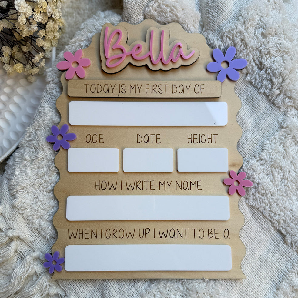 Celebrate the unforgettable moments of your child's school journey with this charming first-and-last day board. A beautiful way to honor their academic achievements, this board features a unique design that allows you to easily change names, making it a perfect keepsake for siblings and future school years. It gracefully connects the thrill of the first day with the proud reflection of the last, offering a nostalgic wrap-up to each school year. More than just a board, it’s a tribute to learning, growth, and the cherished memories your family creates along the way.